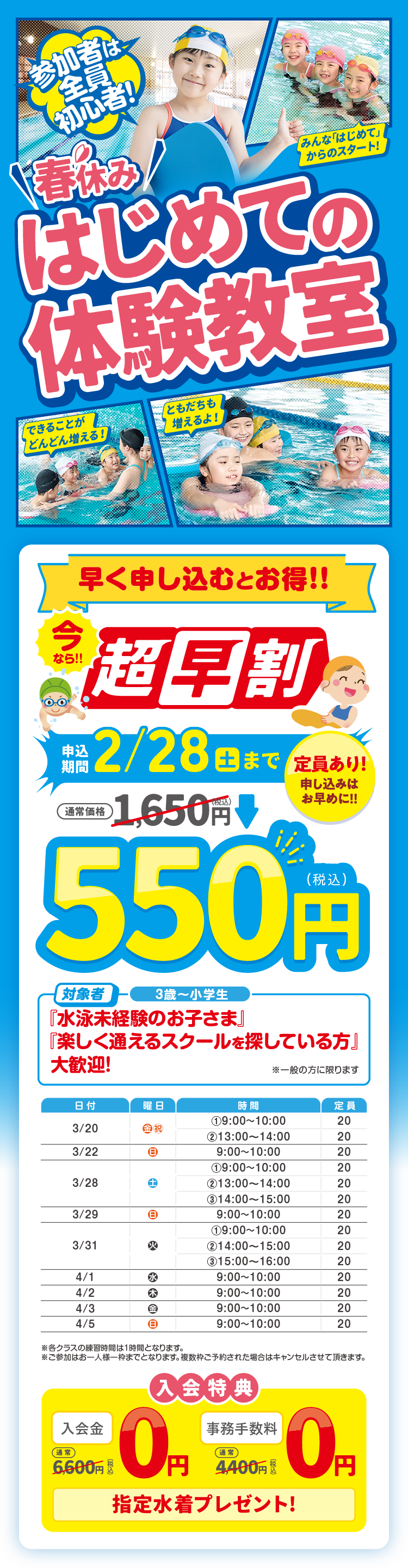スイミングに抵抗があるなかでの参加でしたが、開始早々から楽しそうにしている姿を見ることができ、とても安心しました。先生の声かけと見守りが何よりも励みになったようです。ありがとうございます。