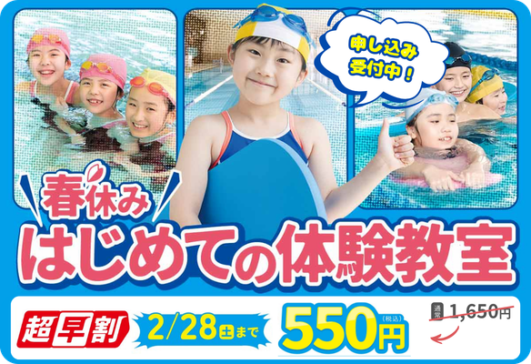 現在『春休み はじめて体験教室』申し込み受付中です!2/28(土)まで”超早割”!早く申し込むとお得です!申し込みは専用サイトから