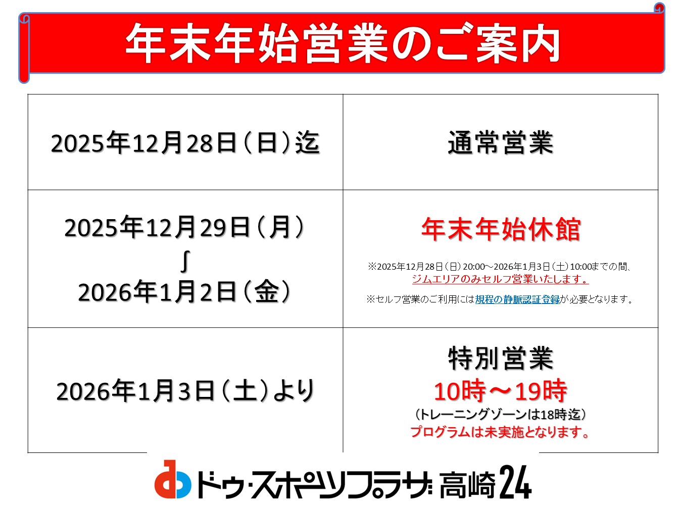 この度、年末年始の営業を下記の通りとさせていただくこととなりました。
