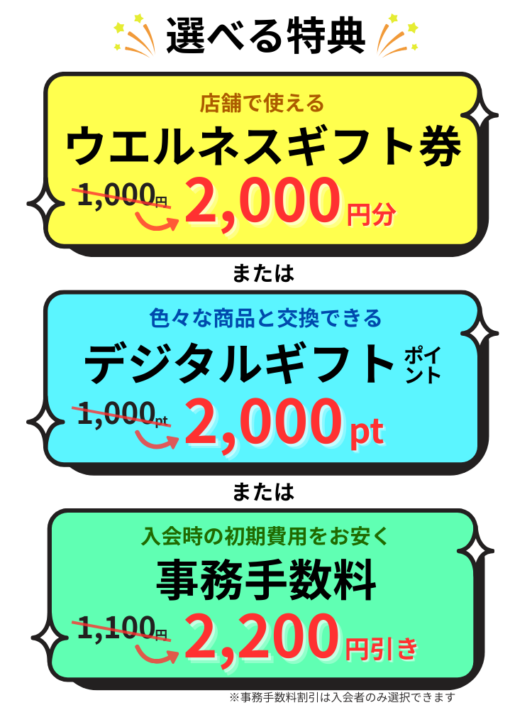 ●キャンペーン等により紹介特典の内容が変わる場合がございます。付与する特典はご入会者様の入会手続き日に準じます。