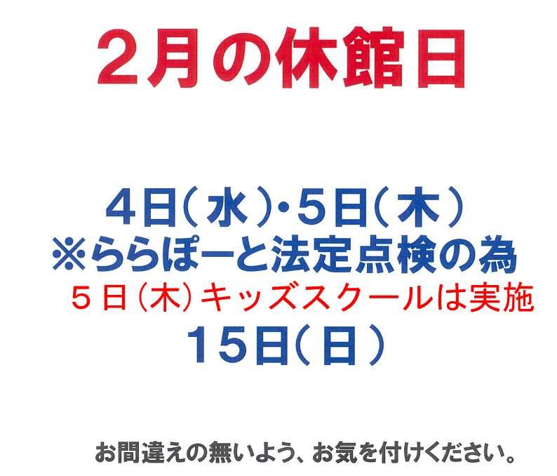 2月の休館日のご案内です。
